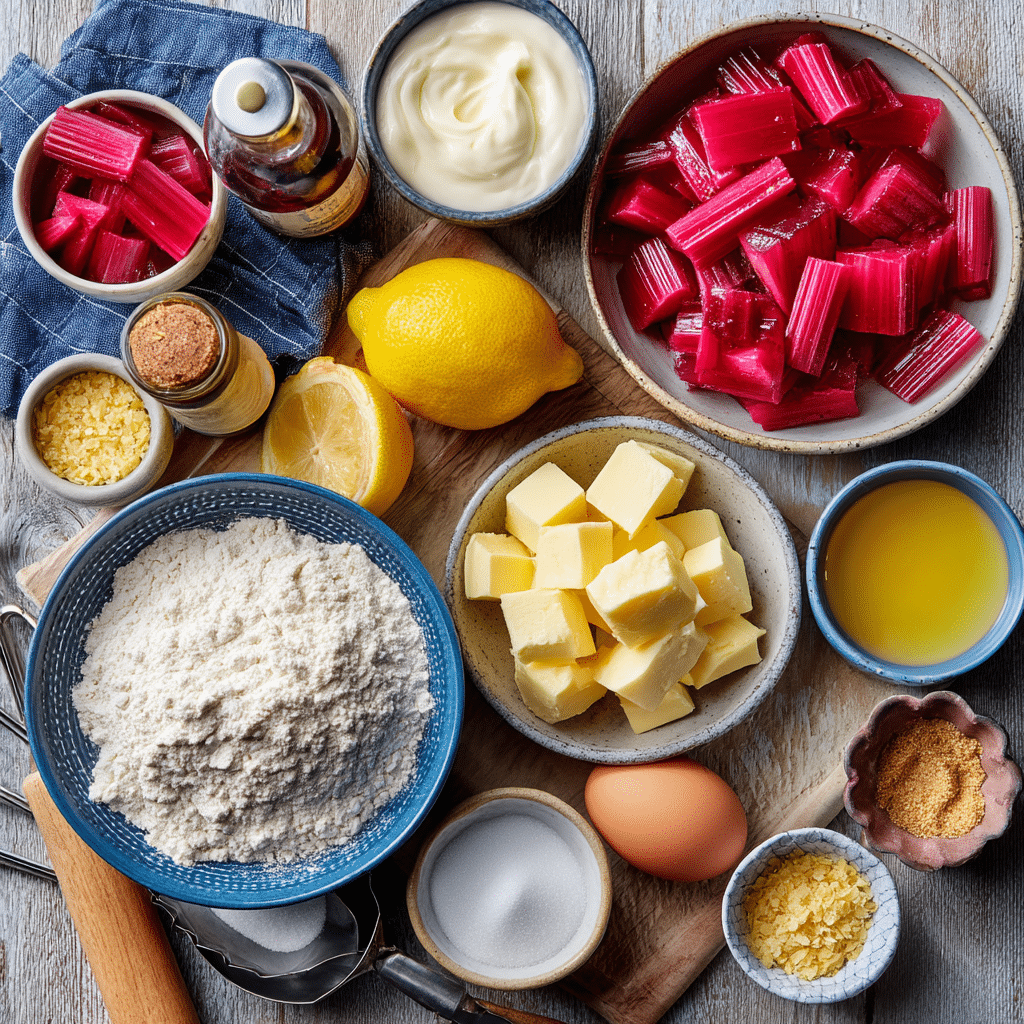 • Lemon Zest (from 1 lemon): Adds bright, citrusy flavor to complement the rhubarb.