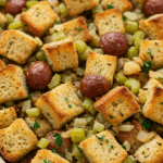 Sausage and Herb Stuffing is the side dish that brings savory, sweet, and crispy perfection to every bite. With its crusty bread, flavorful sausage, tart apples, and sweet cranberries, it’s perfect for Thanksgiving, Christmas, or any festive meal. Intermediate yet approachable, this stuffing is sure to impress your guests. So, grab your baking dish, whip up this hearty recipe, and enjoy a holiday favorite. We’d love to hear how your stuffing turns out—share your creations in the comments or on social media!