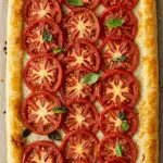 Savory Tomato Tart is the perfect way to enjoy a fresh, flavorful dish that showcases summer’s best tomatoes. With its flaky puff pastry, creamy ricotta filling, and vibrant tomato topping, it’s a dish that’s as elegant as it is delicious. Perfect for brunches, light dinners, or summer gatherings, this tart is sure to become a favorite. Play with the variations, customize with your favorite herbs, and savor every flaky, creamy bite. What’s your favorite way to enjoy this tomato tart? Share your ideas in the comments and let us know how it turned out!