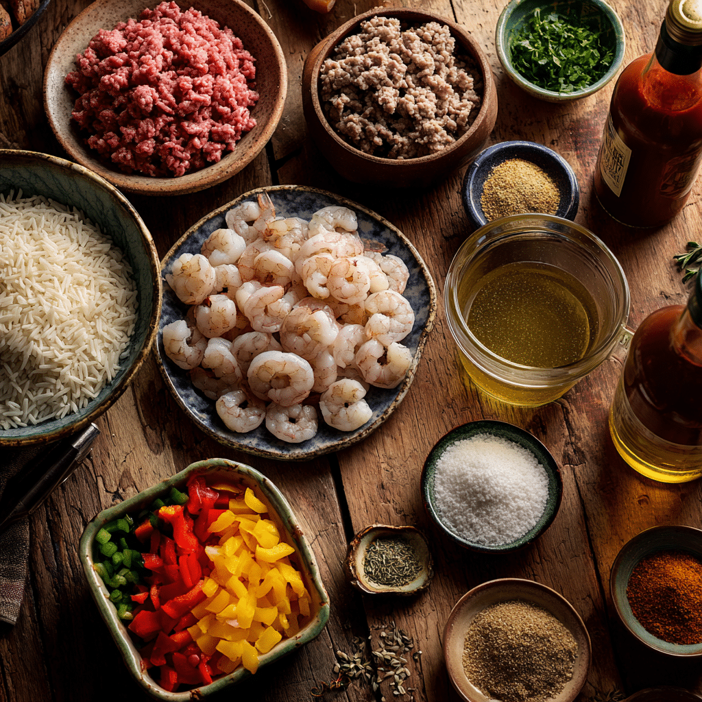 Shrimp Sausage Dirty Rice uses a mix of proteins, veggies, and spices for a robust flavor profile. Here’s what you need and why each one matters: