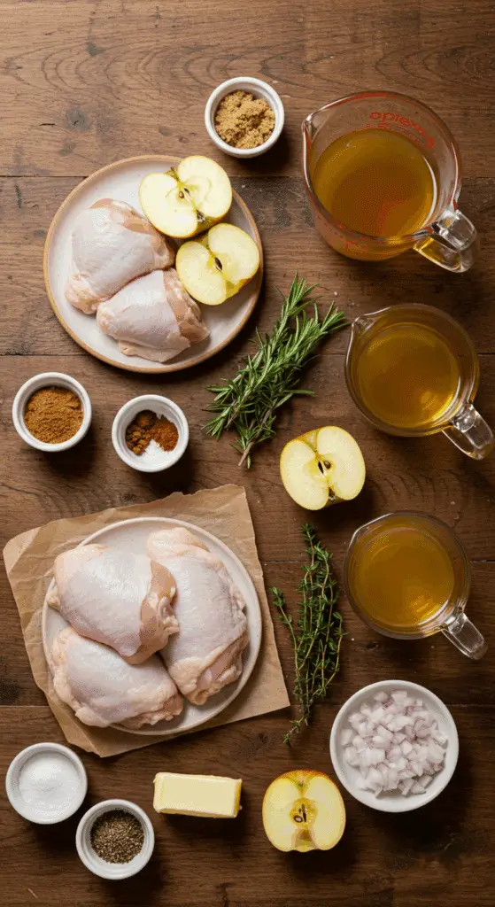 Health perks: Chicken thighs provide protein and iron for muscle health, while apples offer fiber and vitamin C for immunity. The minimal butter and brown sugar keep it balanced, and the apple cider adds natural sweetness without heavy calories. The recipe’s flexibility supports gluten-free or lower-sugar diets.