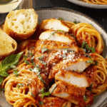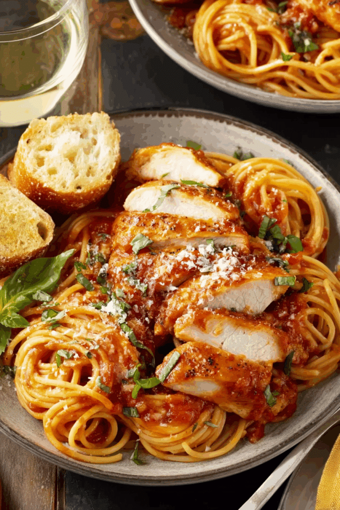 5. Serve Over Pasta: Plate with pasta, chicken, sauce, and optional garnishes for a complete meal.