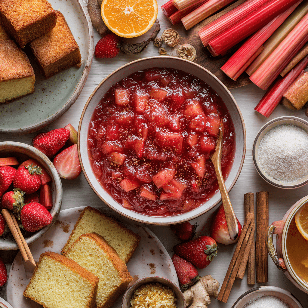 Slow-Cooked Strawberry Rhubarb Sauce uses fresh, straightforward ingredients to create its signature sweet-tart profile. Here’s what you need and why each one matters: