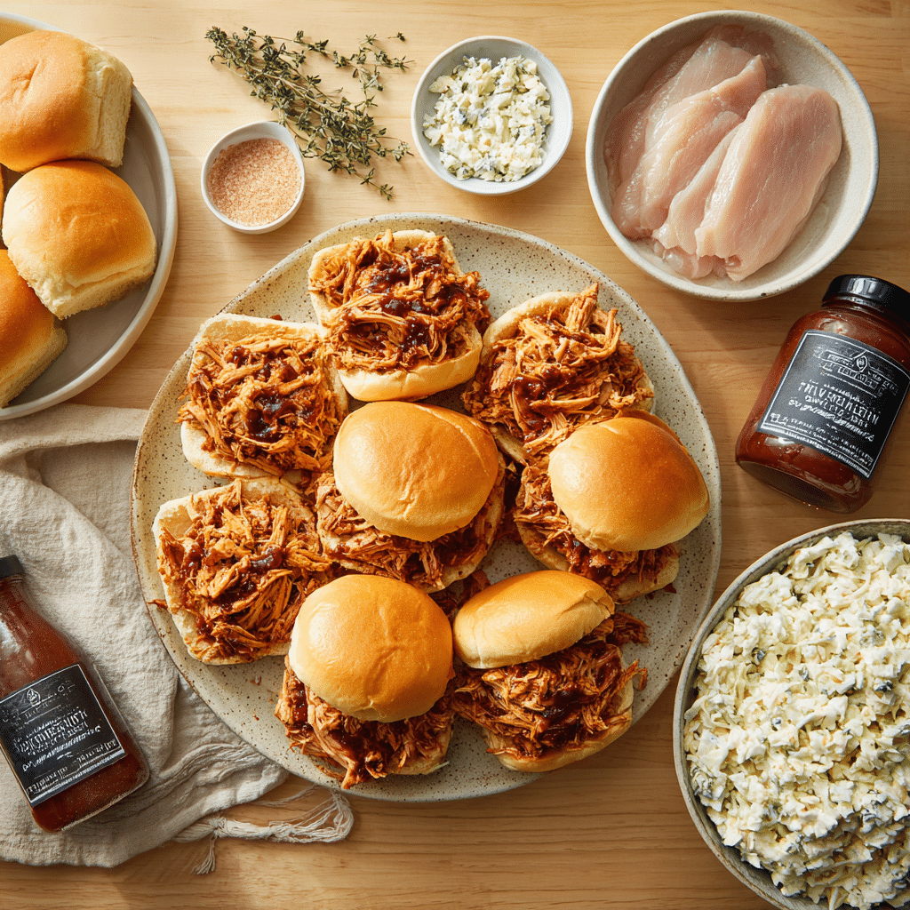 Slow-Cooker Barbecue Chicken Sliders use simple ingredients to create a bold, smoky dish. Here’s what you need and why each one matters:
