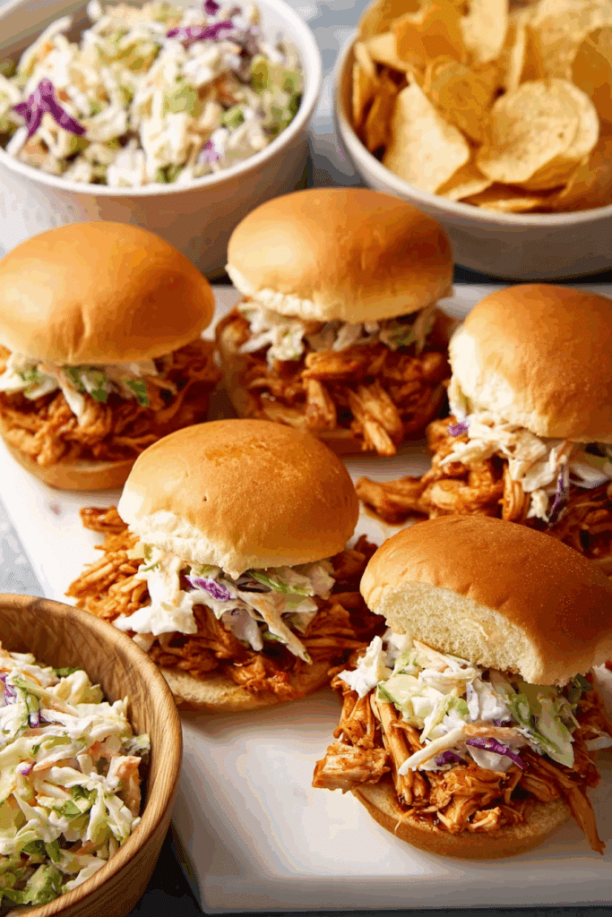 Craving tender, smoky barbecue chicken sliders that are perfect for game days, parties, or a quick family meal? Slow-Cooker Barbecue Chicken Sliders deliver big flavor with minimal effort! Brined for juiciness, slow-cooked to perfection, and tossed in hickory barbecue sauce, these sliders are served on soft buns with optional coleslaw for crunch.Craving tender, smoky barbecue chicken sliders that are perfect for game days, parties, or a quick family meal? Slow-Cooker Barbecue Chicken Sliders deliver big flavor with minimal effort! Brined for juiciness, slow-cooked to perfection, and tossed in hickory barbecue sauce, these sliders are served on soft buns with optional coleslaw for crunch.