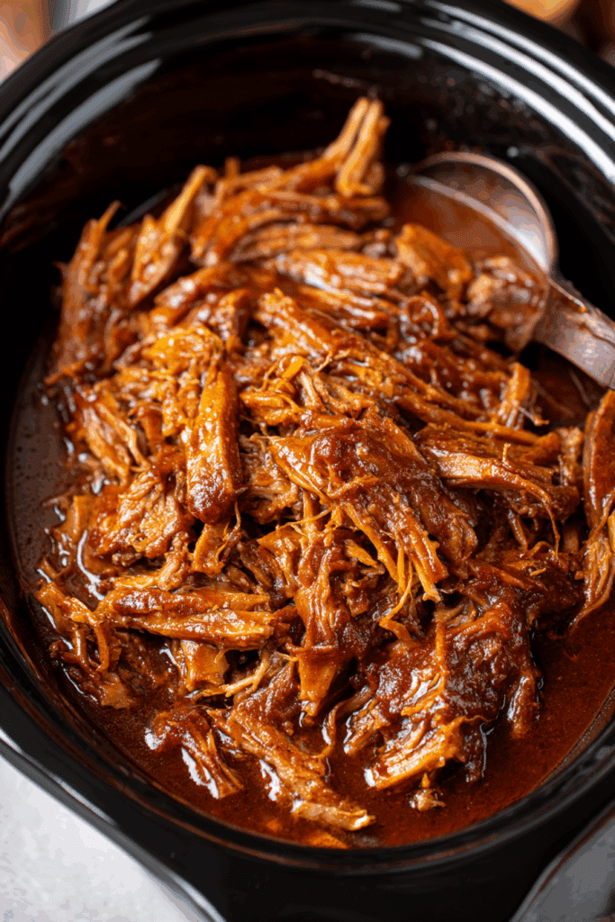 - Vegetarian: Swap pork for jackfruit or shredded king oyster mushrooms, cooking for 3-4 hours on low, and use vegetable broth with the BBQ sauce.