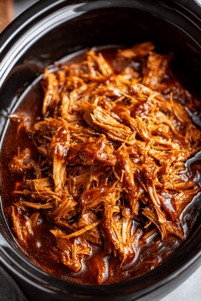 Cover and cook on low for 8–10 hours or high for 4–5 hours. You’ll know it’s ready when the pork is fork-tender and falling apart with little resistance.