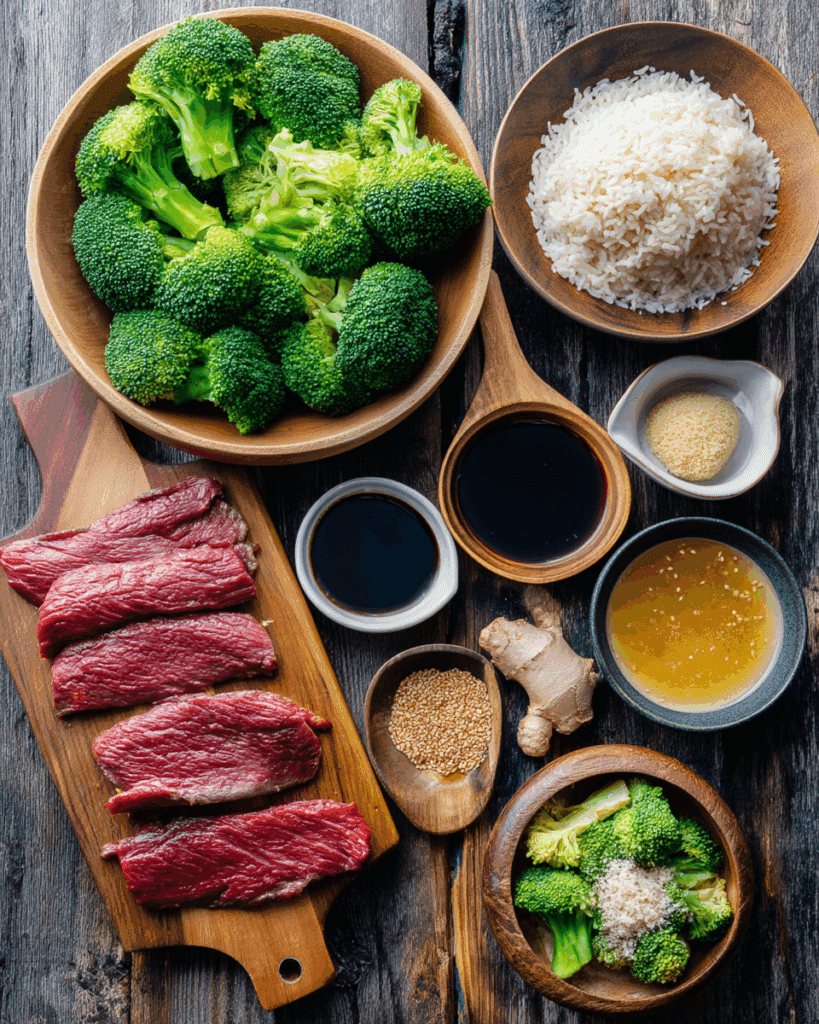The magic of Slow Cooker Beef and Broccoli comes from its bold, balanced ingredients. Each one adds flavor, texture, or richness to create a harmonious dish. Here’s what you’ll need:
