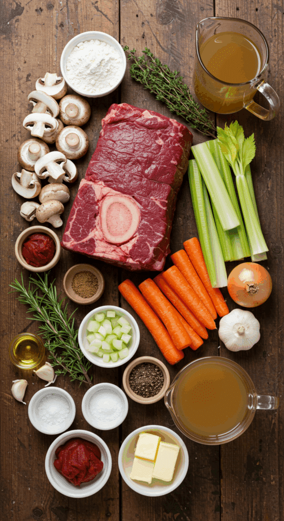 • Vegetables: Mushrooms, onions, carrots, and celery create a hearty, flavorful base.