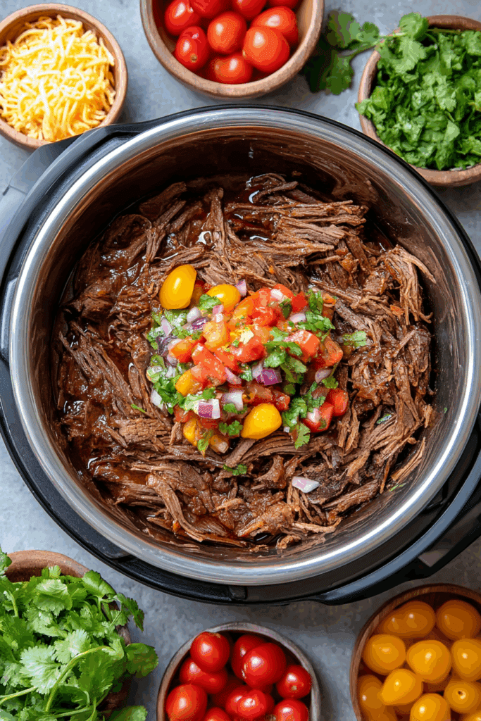 Pro Tip: Serve family-style by placing the shredded beef in a large serving bowl with a spoon, alongside a stack of warm tortillas or shells and bowls of toppings, letting everyone build their own tacos—it’s a fun, interactive way to enjoy this dish!
