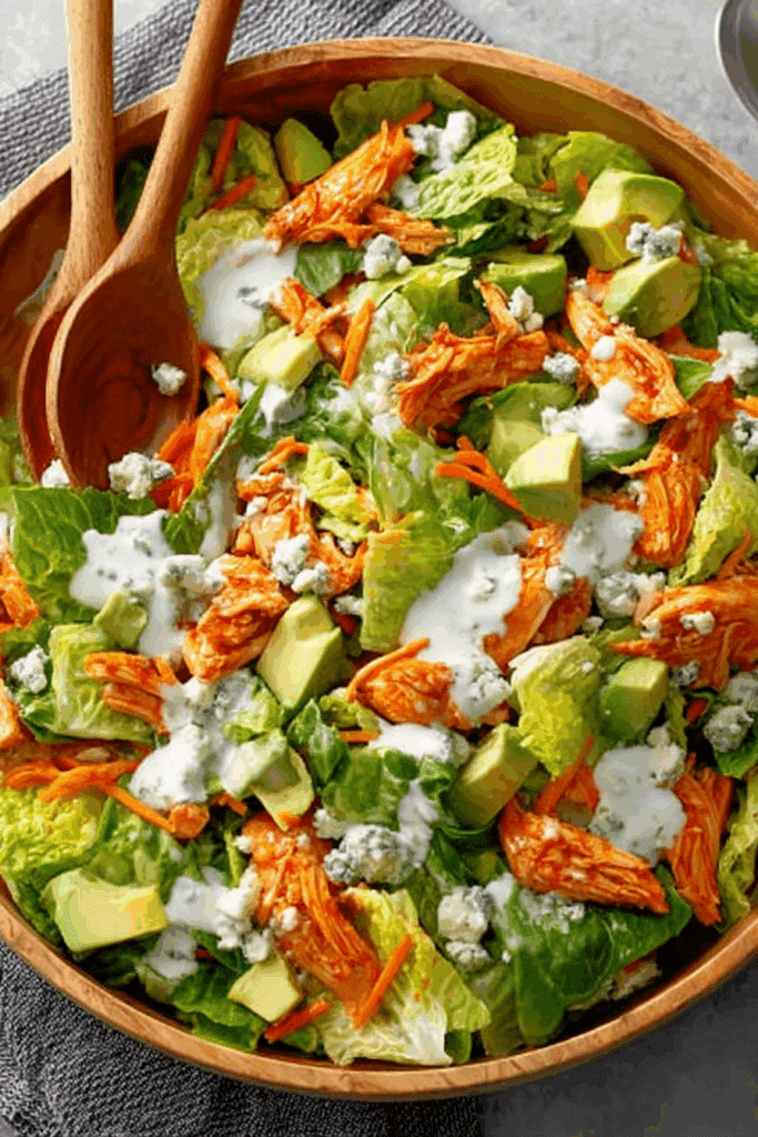 • Why It’s Unique: The slow-cooker buffalo chicken is juicy and spicy, infused with wing sauce and ranch seasoning, while the salad’s fresh veggies and creamy blue cheese dressing balance the heat. It’s a healthy, all-in-one meal that’s quick to assemble and endlessly customizable.