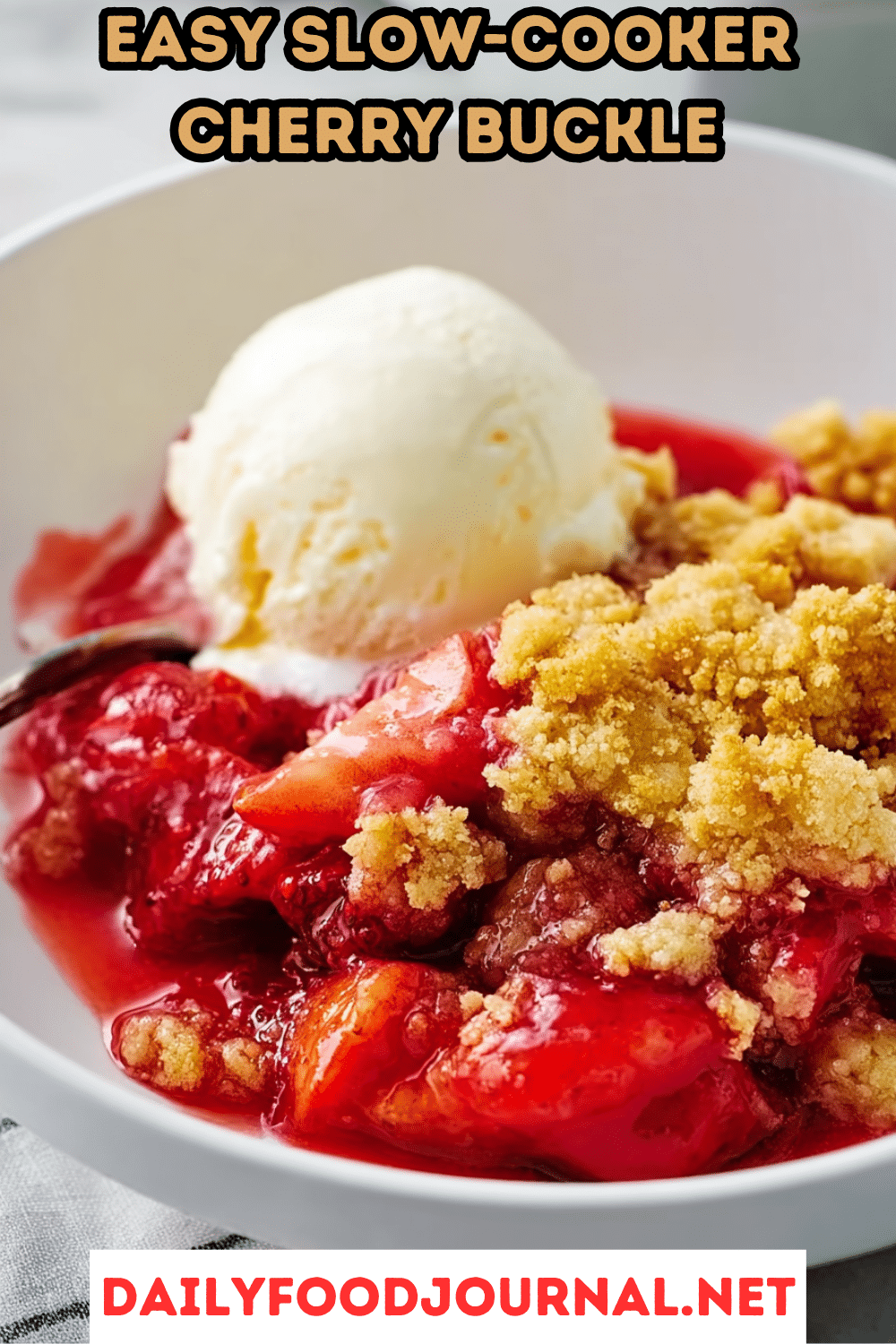 Slow-Cooker Cherry Buckle is a delightful, no-fuss dessert that’s perfect for any occasion. With its sweet cherry-pear filling, crunchy almond-oat topping, and buttery cake layer, it’s a warm, comforting treat that’s sure to please. The slow cooker makes it effortless, so you can enjoy a homemade dessert with minimal work. Try different fruits, nuts, or toppings to make it your own, and serve it at your next family dinner, potluck, or cozy night in. Grab your slow cooker and let’s make a buckle that’s as delicious as it is easy! What’s your favorite fruit combo for a buckle?