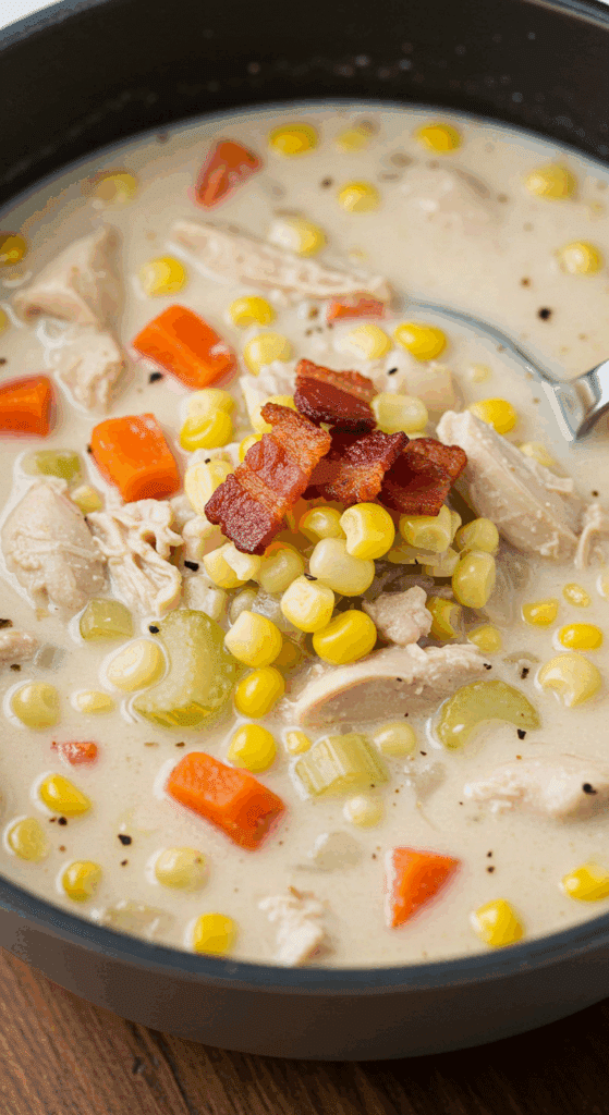 What makes Slow Cooker Creamy Chicken & Corn Soup so special? This chowder combines tender chicken, sweet corn, and creamy sweet potatoes in a savory broth, enriched with bacon, fresh thyme, and a touch of milk for creaminess. The slow cooker melds flavors effortlessly, creating a satisfying, family-friendly meal with minimal hands-on time. Perfect for busy days, potlucks, or freezing for later, it’s versatile, kid-friendly, and adaptable for dietary needs.