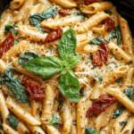 If there’s one meal I can always count on to impress without stressing, it’s this Slow Cooker Creamy Tuscan Pasta. It’s rich, comforting, and filled with bold Italian-inspired flavors—yet so easy to make that it practically cooks itself. Whether you’re feeding the family, hosting friends, or just craving something warm and cheesy, this pasta dish hits the mark every single time