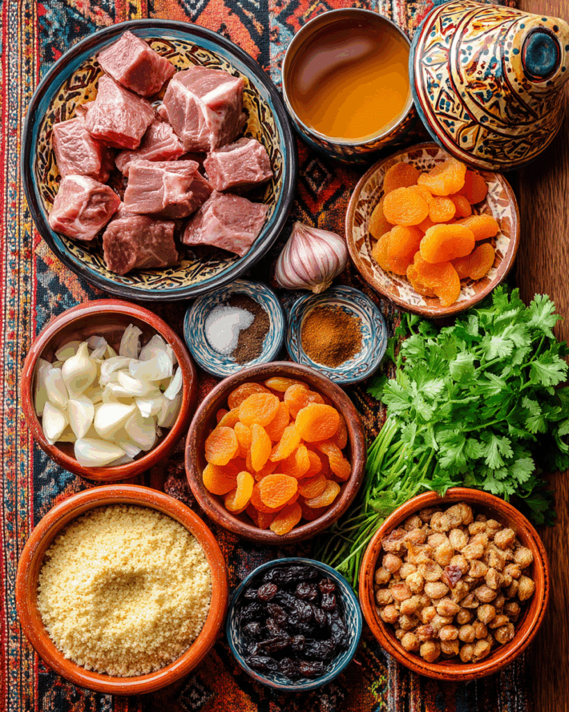The beauty of Slow Cooker Moroccan Lamb Tagine lies in its vibrant, flavorful ingredients. Each one adds depth, sweetness, or spice to create a rich, balanced dish. Here’s what you’ll need:
