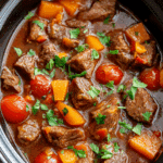 Slow Cooker Moroccan Lamb Tagine is a hearty, aromatic dish inspired by traditional Moroccan cuisine. Named after the conical clay pot it’s typically cooked in, this tagine features succulent lamb shoulder simmered with tomatoes, dried apricots, raisins, and a blend of warm spices like cumin, coriander, and cinnamon. The result is a perfect balance of savory, sweet, and spicy flavors that’s both comforting and exotic.