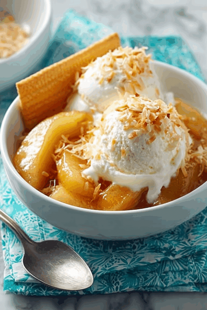 - Why It’s Unique: The slow cooker melds bananas and pineapple with a rum-spiked caramel sauce, enhanced by coconut extract for that piña colada vibe. Toasted coconut adds crunch, while optional ice cream and cookies elevate the experience. This recipe serves 4-6, ideal for small gatherings, date nights, or a special treat, with a dessert that’s both nostalgic and modern.
