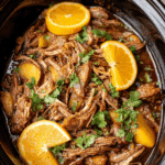 Slow Cooker Pork Carnitas are a savory, succulent dish featuring tender pork shoulder cooked low and slow with onions, garlic, and spices, then shredded and mixed with its own flavorful juices. The orange juice adds a subtle sweetness that balances the earthy spices, creating a versatile filling for tacos, rice bowls, or any Mexican-inspired meal. It’s a budget-friendly, hands-off recipe that delivers big on flavor.