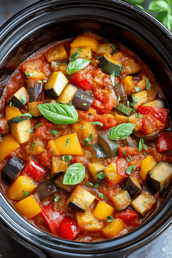 Ratatouille doesn’t rely on heavy sauces or complex seasonings. Instead, it’s all about enhancing the natural sweetness of the vegetables with olive oil, garlic, and a few dried herbs. The slow cooker helps concentrate those flavors as the vegetables release their juices and cook into a rich, rustic medley.