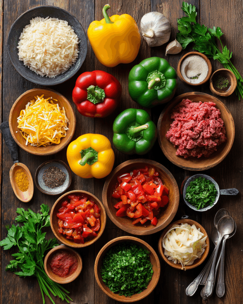 The magic of Slow Cooker Stuffed Bell Peppers comes from its fresh, hearty ingredients. Each one adds flavor, texture, or nutrition to create a balanced, delicious dish. Here’s what you’ll need: