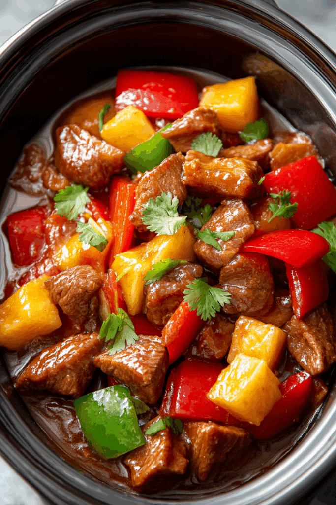 You’re now ready to make Slow Cooker Sweet and Sour Pork that’ll bring bold, Asian-inspired flavors to your table! This dish is all about tender pork, vibrant pineapple, and a sticky sweet-and-sour sauce, made effortless by the slow cooker. Whether you’re serving it for a weeknight dinner, a family gathering, or meal-prepping for the week, it’s sure to be a hit. So grab your slow cooker, chop that pork, and let the kitchen fill with the irresistible aroma of this takeout classic. Play with garnishes, try new sides, and enjoy every sweet, tangy bite. Happy cooking!