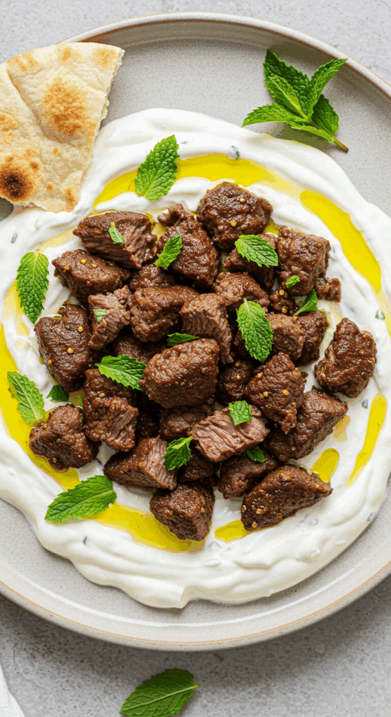 • Why It’s Special: Hard-seared beef mimics the crispness of kebab koobideh, while a creamy cucumber yogurt sauce, inspired by mast-o-khiar, balances the dish with cool tanginess. Toasted walnuts and raisins add crunch and sweetness. This recipe serves 4, perfect for weeknight dinners, cultural feasts, or quick meals.