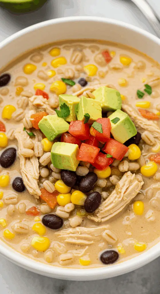 Why These Ingredients Matter: The chicken and beans provide protein, while the corn, squash, and cilantro add fiber, vitamins, and vibrant color. The barley and cream create a hearty, creamy texture, making this a balanced, nutritious chowder that’s both comforting and flavorful.