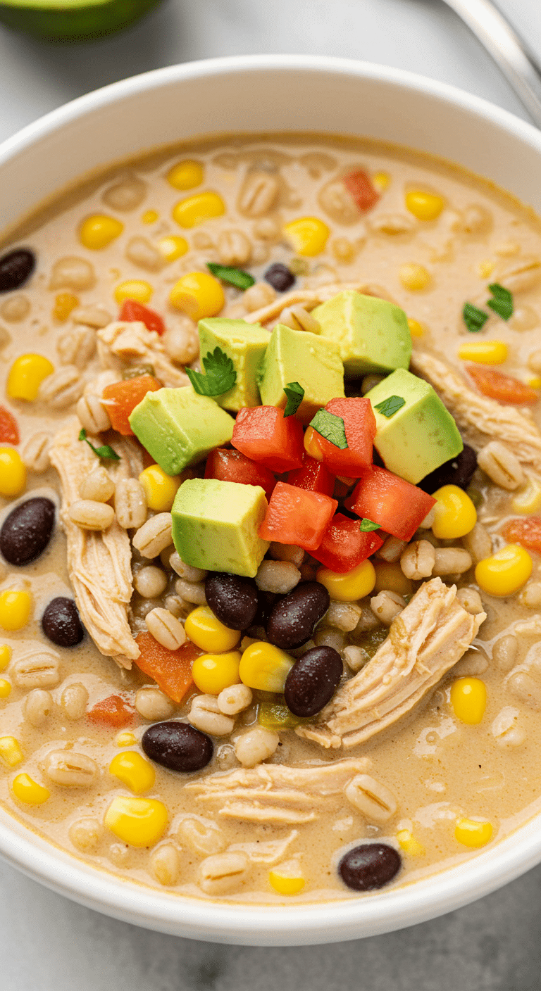 Craving a warm, flavorful soup that’s packed with Southwest-inspired ingredients and comes together in a flash? The Southwest Chicken Barley Chowder is your answer! This vibrant dish combines tender chicken, nutty barley, black beans, corn, and a zesty salsa kick, all in a creamy, comforting broth.