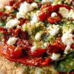 - Why It’s Unique: The sun-dried tomato pesto adds a bold, tangy base, while spinach, mushrooms, and feta bring freshness and savory depth. Whole wheat pita makes it hearty and nutritious, and the quick bake time delivers crispy edges without soggy toppings.