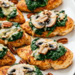 Craving a meal that’s both nutritious and indulgent, with juicy chicken topped with a savory, veggie-packed mushroom and spinach medley? Look no further than Spinach and Mushroom Smothered Chicken! This dish combines tender grilled chicken, melty provolone, and a vibrant spinach-mushroom topping with a crunch of pecans for a restaurant-quality meal at home. Wondering how to whip up this delicious, low-carb dinner in just 30 minutes? Follow along, and I’ll guide you through every step to create this crowd-pleasing dish that’s perfect for weeknight dinners or special occasions!