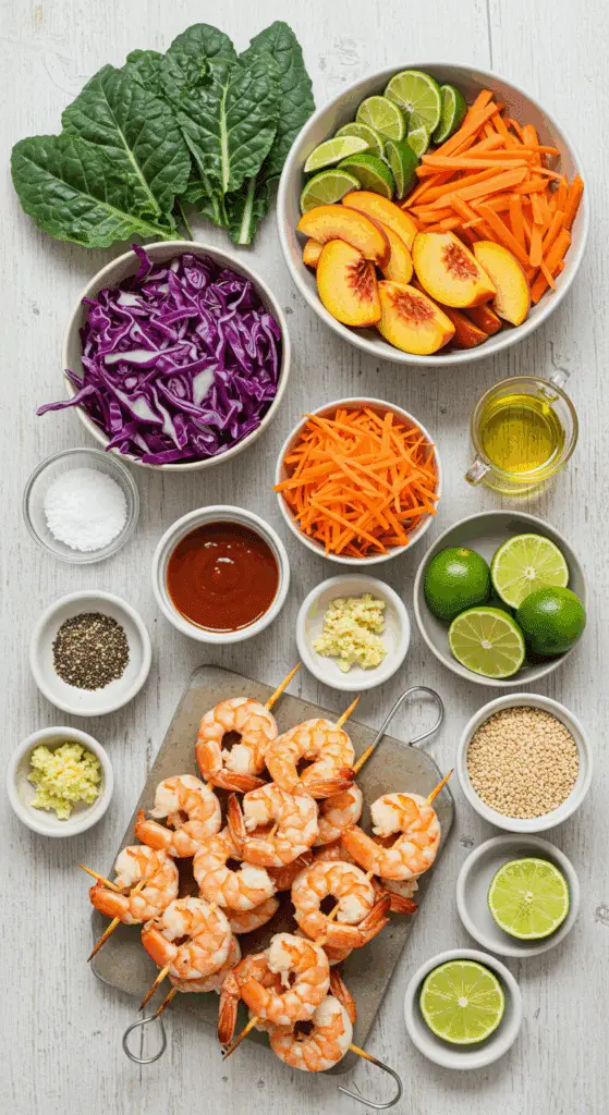 Assembly: Building the Perfect Sriracha Shrimp Skewers with Collard-Peach Salad