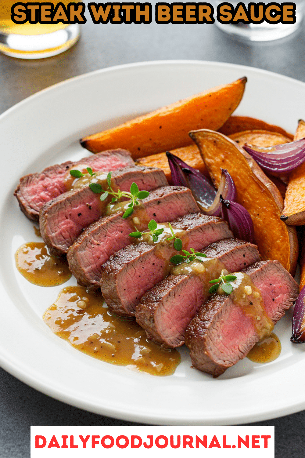 Steak with Beer Sauce and Sweet Potatoes