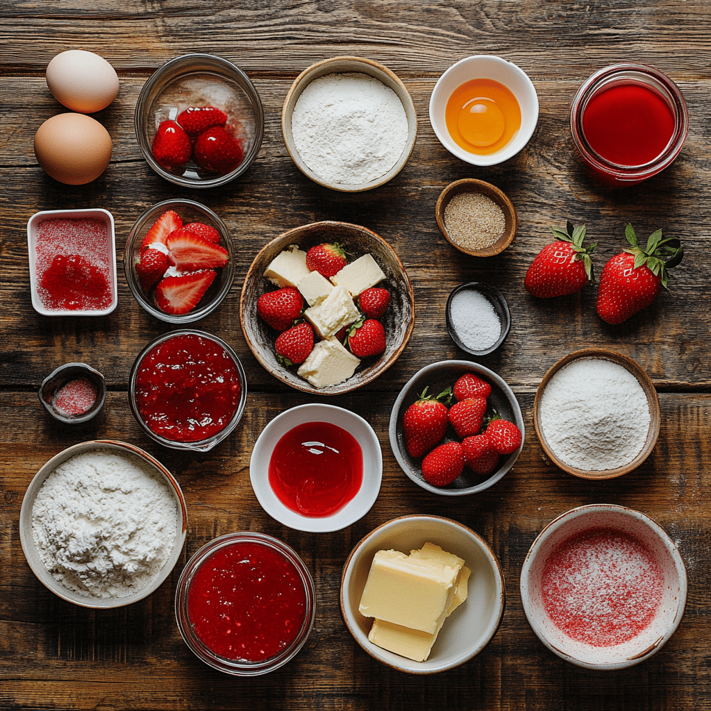 Let’s take a closer look at the ingredients that make this Strawberry Cake so special. For the Cake: