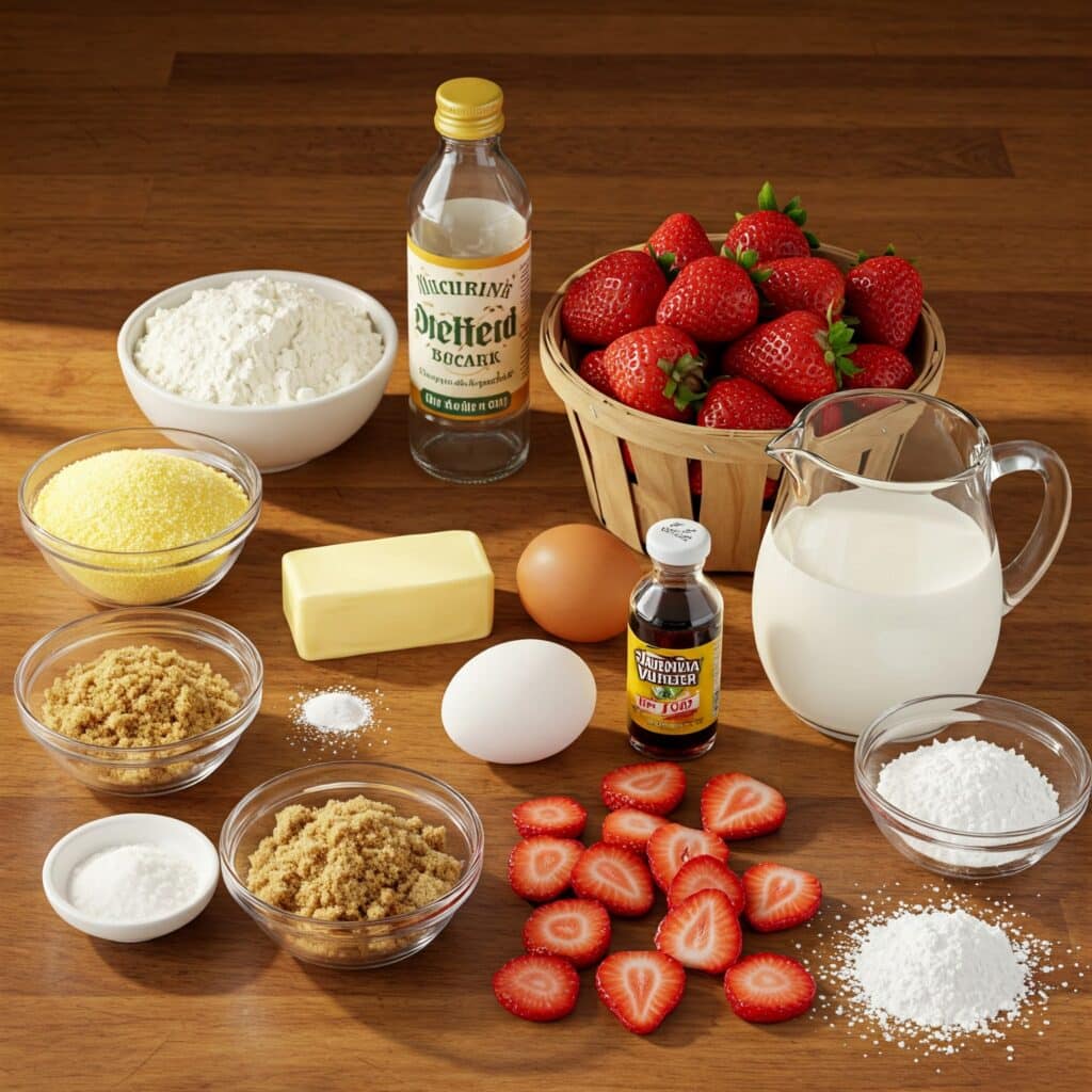 This recipe captures that classic appeal. With its tender, slightly crumbly cake, its juicy, sweet strawberries, and its hint of cornmeal texture. It’s a comforting and familiar dessert.