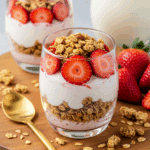 Craving a breakfast that’s quick, nutritious, and tastes like a decadent treat? Strawberry Cheesecake Breakfast Parfaits combine creamy cottage cheese, sweet strawberries, and crunchy granola for a parfait that feels like dessert but is packed with protein and flavor.