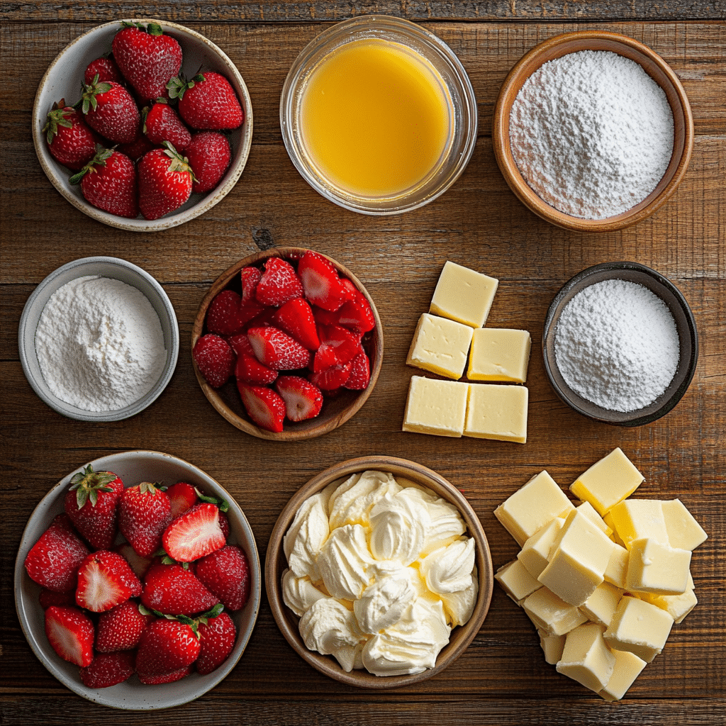 - Sugar (Granulated, divided): Used to macerate the strawberries and sweeten the cheesecake filling.