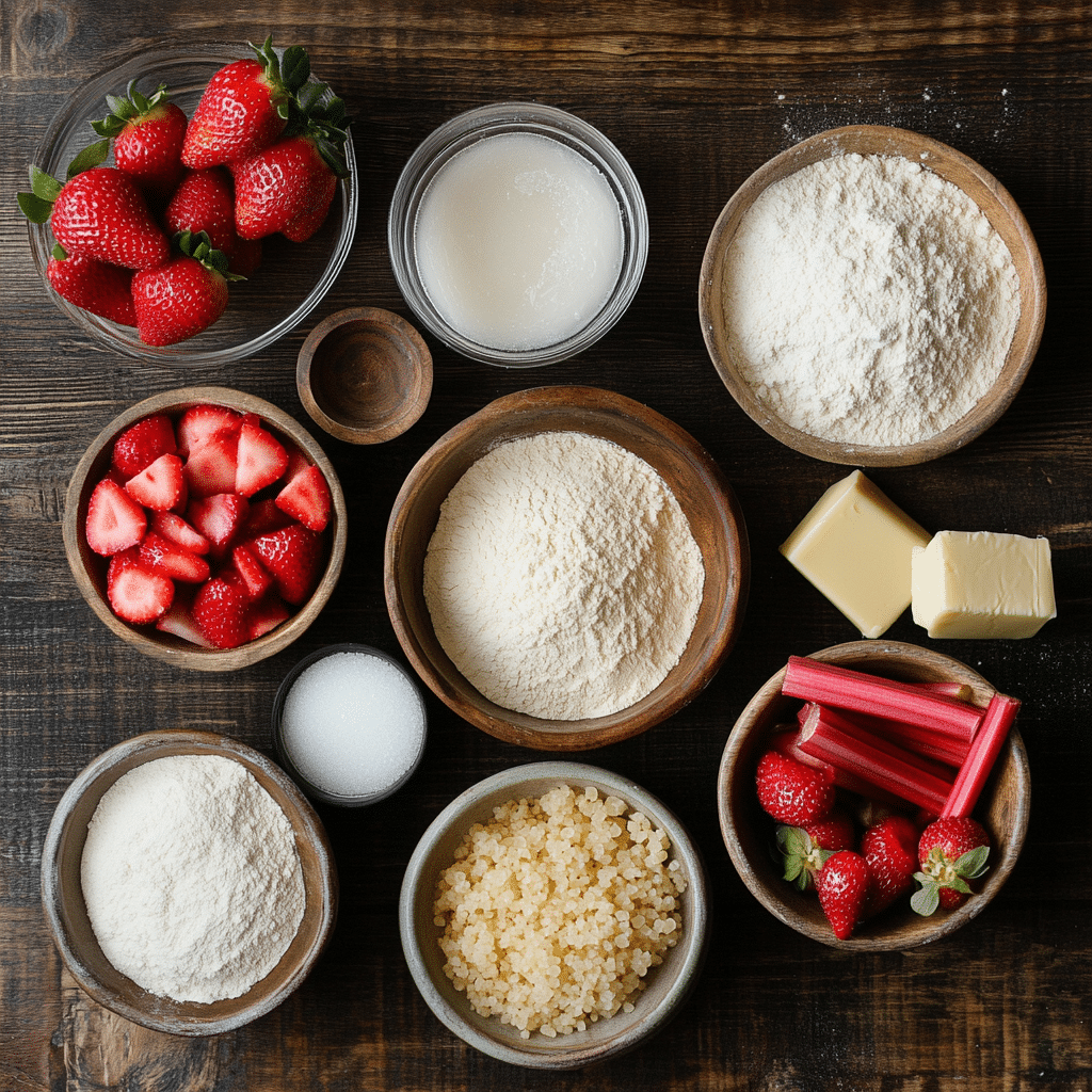 - Sugar: Sweetens the fruit and balances the rhubarb/strawberry tartness.