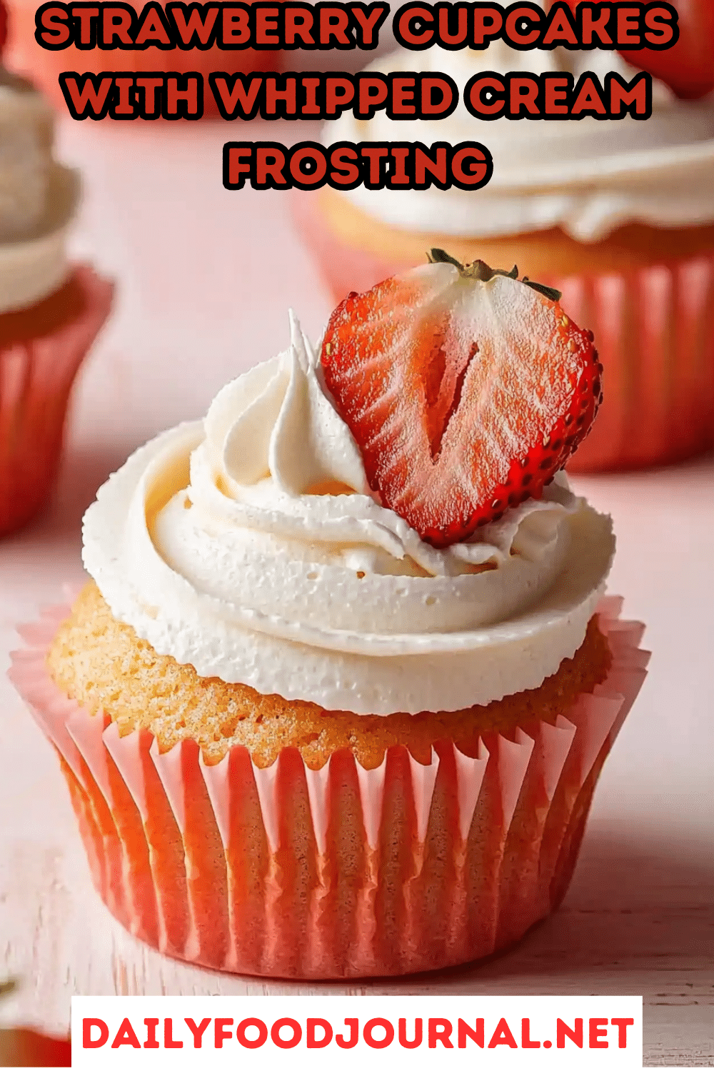 Strawberry Cupcakes with Whipped Cream Frosting
