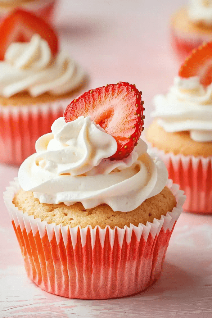 Perfect for spring celebrations, baby showers, or just a cheerful afternoon pick-me-up, these cupcakes are pretty, delicious, and offer a wonderful strawberry experience from the inside out.