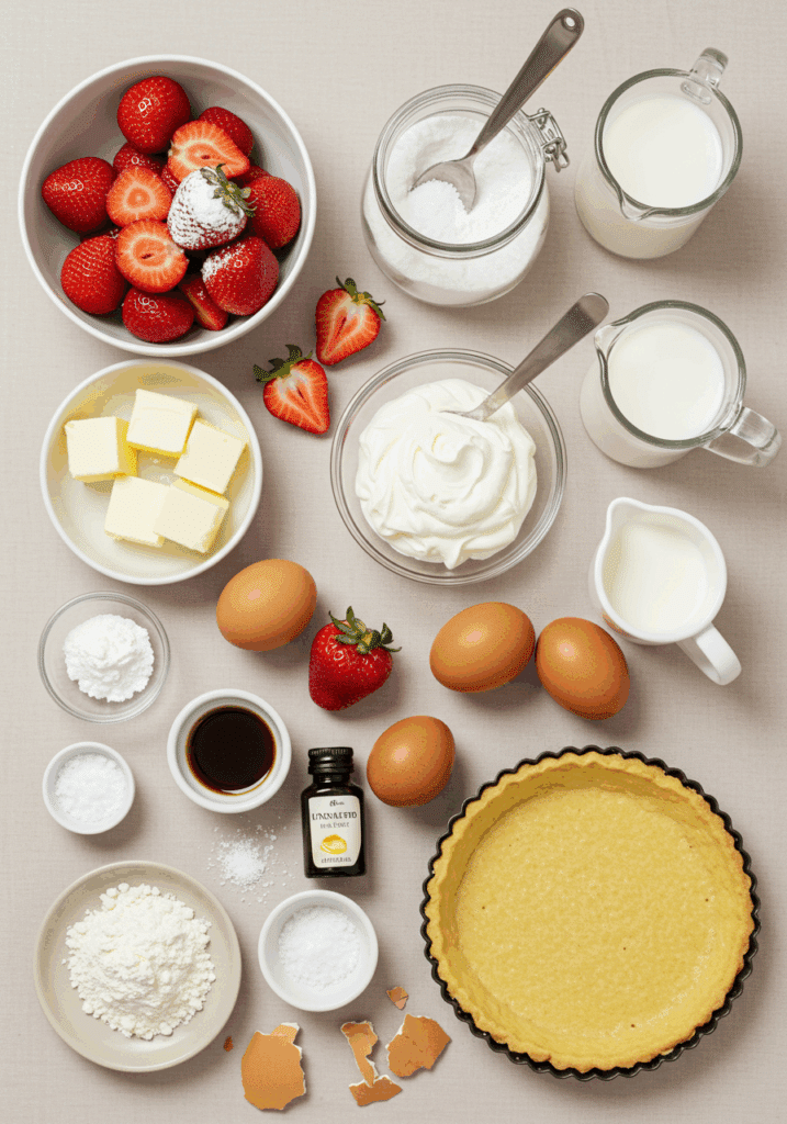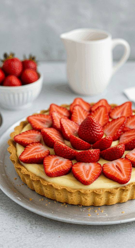 Why These Ingredients Matter: The buttery crust provides a crisp base, the custard delivers a smooth, creamy center, and the whipped cream and strawberries add lightness and freshness. Each component plays a key role in the tart’s balanced flavor and texture.