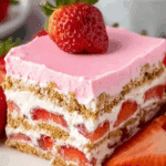 Strawberry Eclair Cake is the ultimate no-bake dessert that’s as easy to make as it is delicious. With its creamy pudding, juicy strawberries, and sweet strawberry frosting, it’s a refreshing treat that’s perfect for any occasion. Whether you’re serving it at a summer barbecue, a holiday party, or just treating your family, this cake is sure to bring smiles. So grab your ingredients, layer it up, and enjoy this delightful dessert that’s as fun to make as it is to eat!