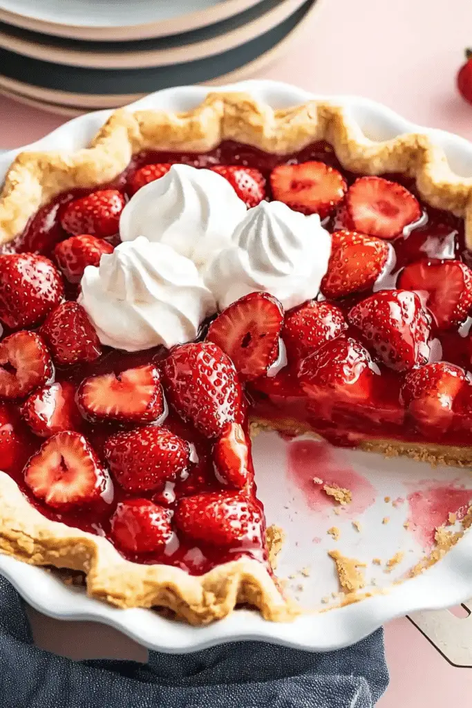 Summary: This Strawberry Glaze Pie features a flaky, buttery crust filled with fresh, glazed strawberries. It’s a simple yet elegant dessert that’s perfect for showcasing the sweetness of summer berries.