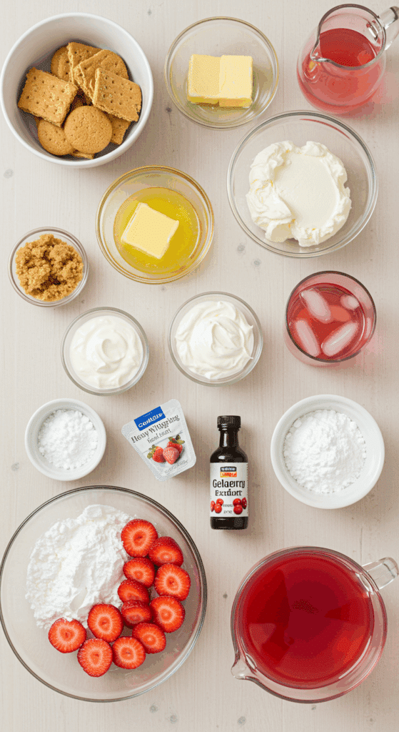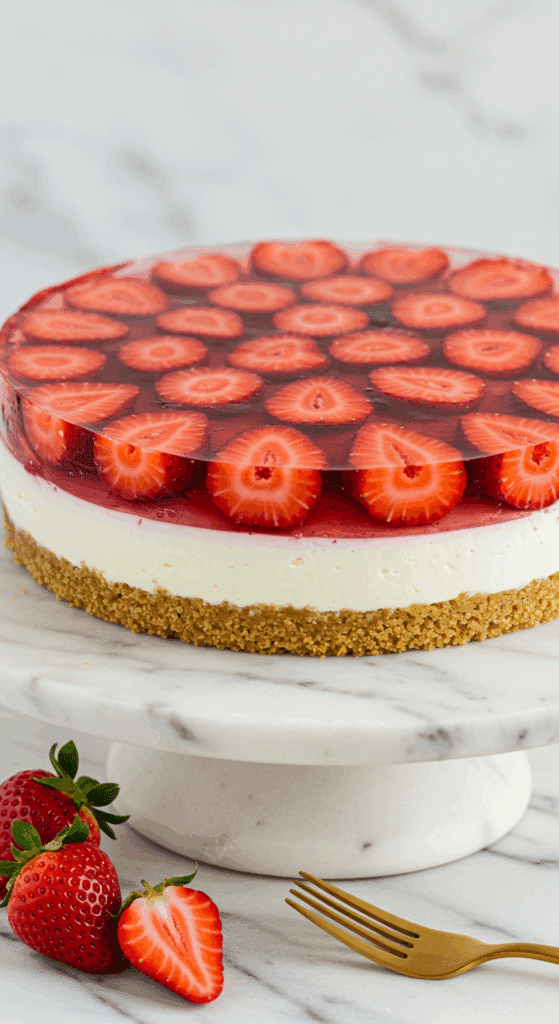 Why These Ingredients Matter: The graham cracker crust offers a sweet, crunchy foundation, the cheesecake layer provides creamy richness, and the jelly layer with fresh strawberries adds a refreshing, fruity finish.