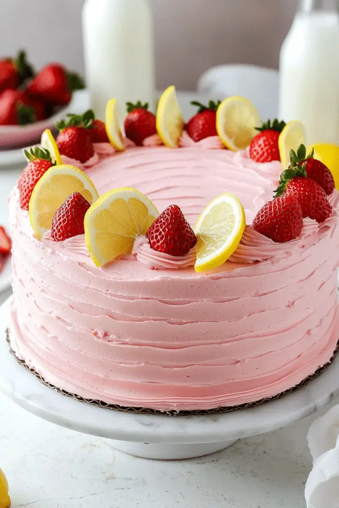 This recipe guides you through creating both the delicate lemon cake and the fluffy strawberry buttercream. It finishes with simple, elegant decorations using fresh fruit. It’s truly a delightful cake to make and share.