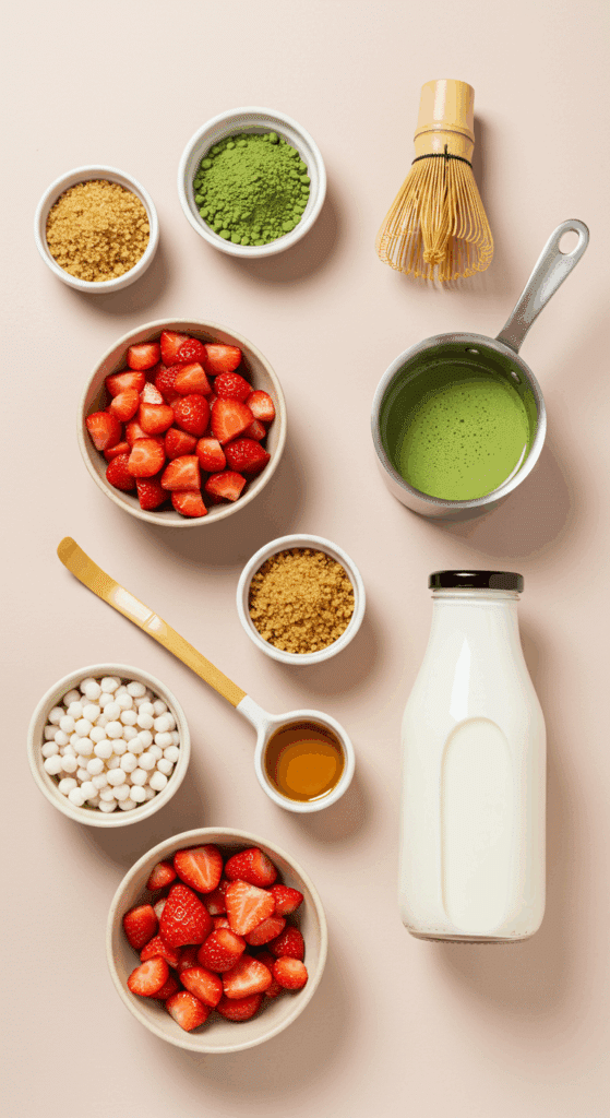 Why These Ingredients Matter: The strawberries provide a sweet, fruity base, while matcha adds an earthy, antioxidant-rich layer. Milk creates creaminess, and boba pearls bring the chewy fun, with brown sugar adding a caramel-like sweetness.