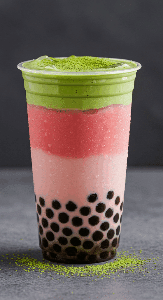 • Why It’s Special: The contrast of sweet strawberry milk and earthy matcha creates a unique flavor, while the boba adds a fun, chewy texture. It’s a refreshing, energizing drink with a gorgeous presentation.
