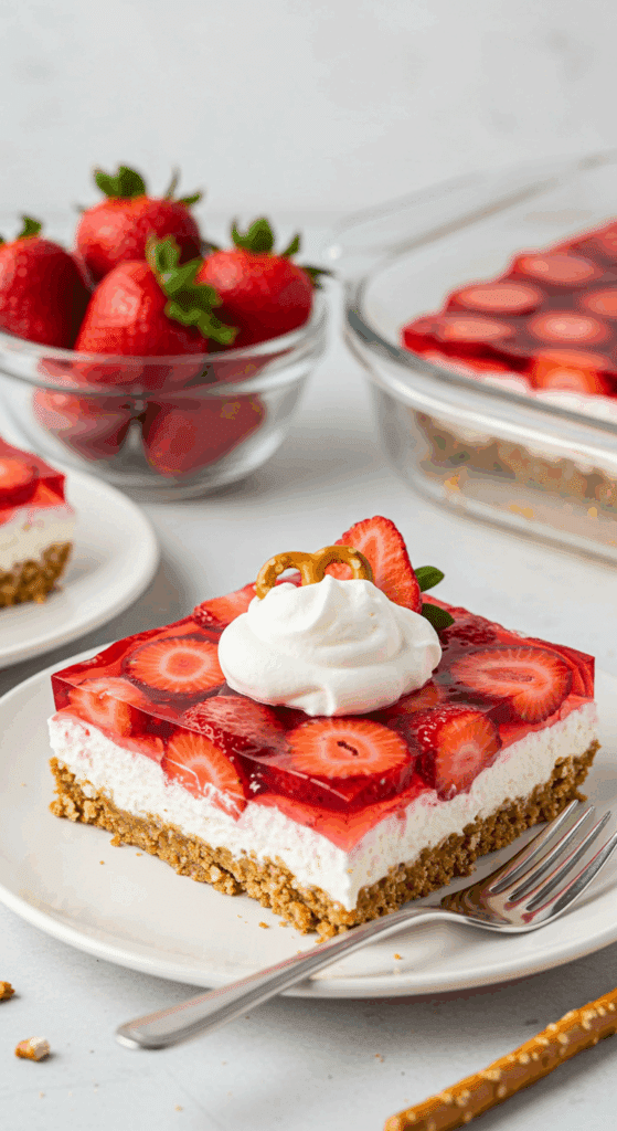 Why These Ingredients Matter: The pretzels provide a salty crunch, the cream cheese and whipped topping create a smooth, sweet layer, and the strawberry Jell-O with frozen strawberries delivers a refreshing, fruity finish.