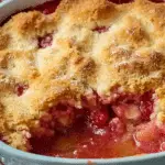 Summary: This Strawberry Rhubarb Cobbler is a simple yet satisfying dessert featuring a juicy, sweet-tart filling made with fresh strawberries and rhubarb, topped with a flaky, buttery crust made with oil. It’s a perfect way to enjoy the flavors of spring and summer.