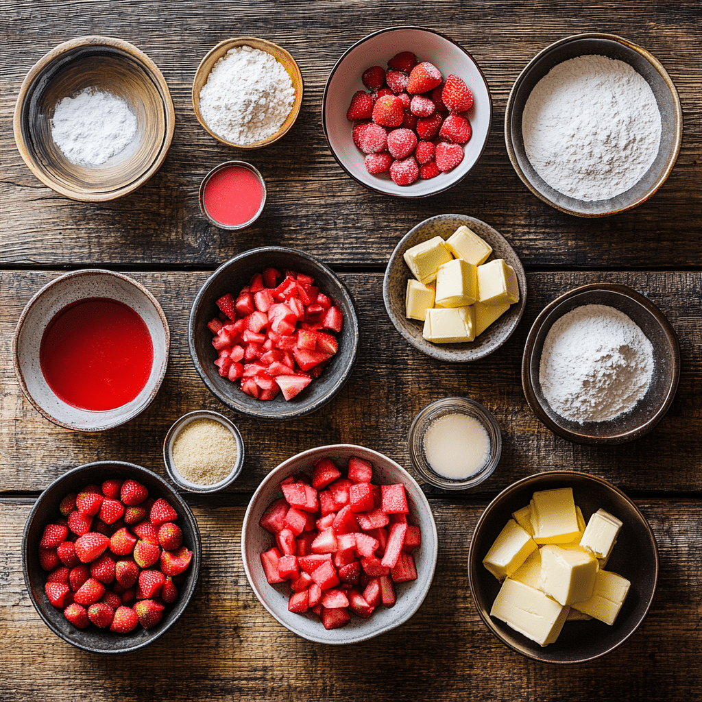 - Fresh or Frozen Rhubarb & Fresh Strawberries: The stars, providing the essential sweet-tart flavor. Frozen rhubarb works well (thaw and drain); fresh strawberries are preferred over frozen for better texture in the filling.
