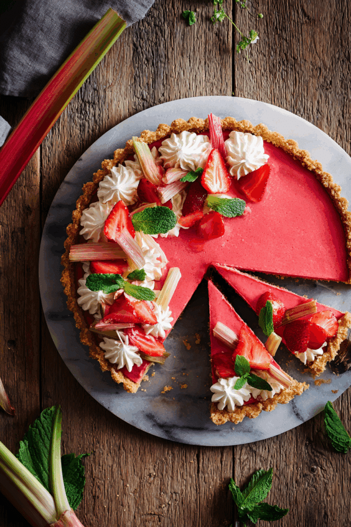 Serving Strawberry Rhubarb Tart is all about highlighting its creamy filling and vibrant toppings: